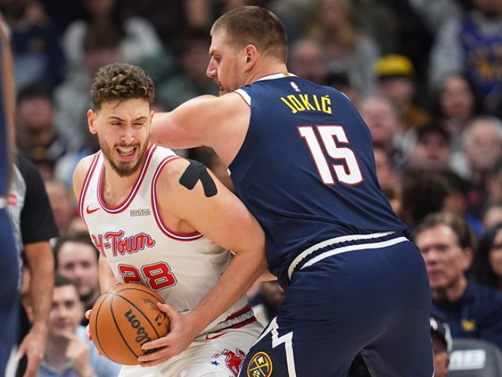Denver je u četvtrom kvartalu na smjenu vodio sa momentima u kojima je bilo neriješeno, Jokić je u posljednjih pet minuta krenuo da rešeta i šutevima za tri poena, ali je Šengun na nekoliko sekundi prije kraja utakmice pogodio dvojku za vođstvo Hjustona 117:116. Ipak, mnogo bure se diglo nakon faula bez lopte koji je dosuđen Ejmenu Tompsonu nad igračem Denvera, nakon čega je Džamal Marej postigao penal za produžetak na dvije i po sekunde do kraja, a Jokić promašio trojku za pobjedu.